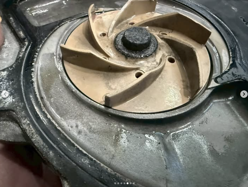 取り外したウォーターポンプはガタも出始めインペラがハウジングに当たっていました