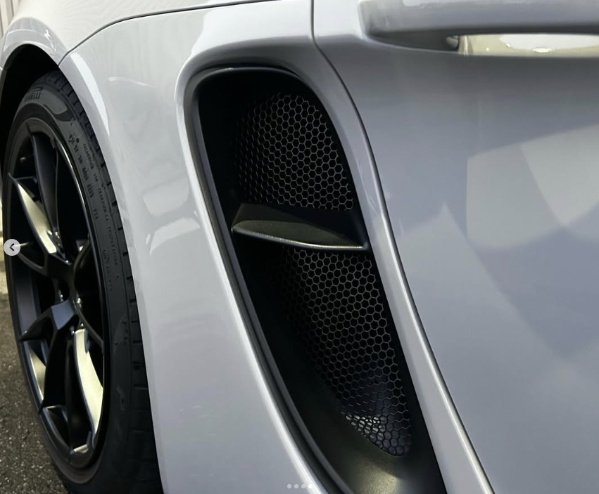 718GTS4.0ボクスター バンパーとサイドグリルの開口部にメッシュを取り付け